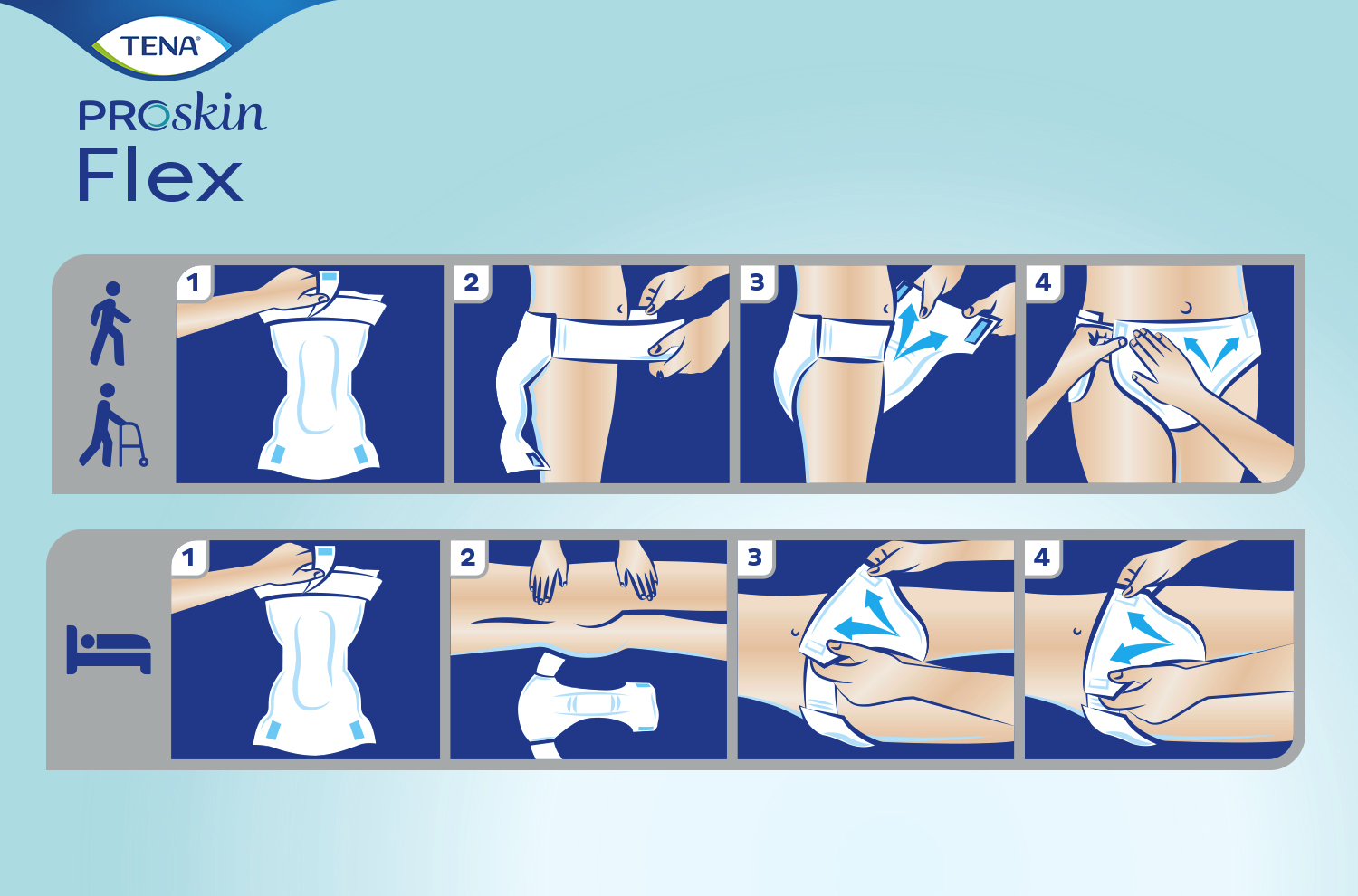 Plenice s pasom TENA Flex Ultima so prilagodljive plenice s pasom za inkontinenco , ki so zasnovane za preprostejšo in bolj ergonomsko menjavo izdelka ter primerne za pokretne, delno pokretne ali nepokretne osebe. Za izjemno zaščito plenice s pasom ProSkin Flex s tehnologijo FeelDry Advanced™ tekočino hitro vpije v jedro, in tako ohranja površino kože suho. Super vpojno, hitro delujoče jedro v trenutku zadrži tudi večje količine urina in zagotovi suhost, medtem ko popolnoma zračni vrhnji sloj s ConfioAir™ tehnologijo mogoča dihanje kože. Vse te lastnosti pomagajo ohranjati zdravo kožo. Prilagodljivi ComfiStretch pas omogoča tesno prileganje za večje udobje ter zagotavlja boljšo zaščito pred iztekanjem. Za preprostejšo uporabo ima pas ježke za enostaven oprijem, ki jih pripnete na sprednji strani plenice. Omogoča popolno prilagoditev obliki telesa..